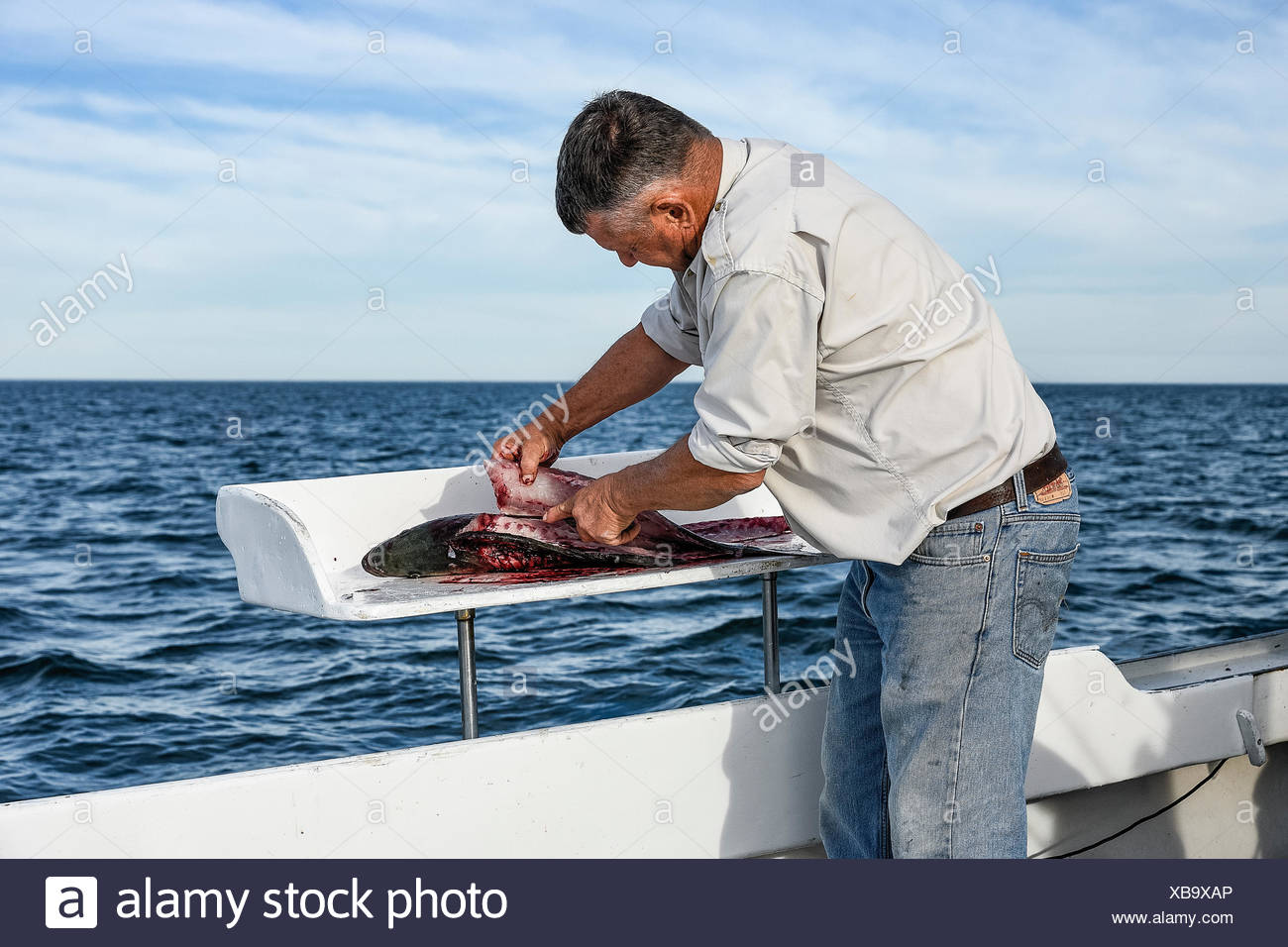 Cleaning A Freshly Caught Fish On The Boat Cape Cod