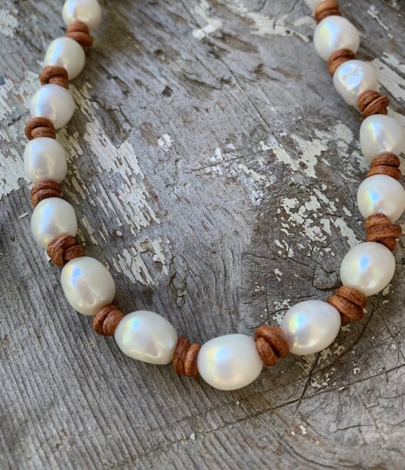 Boho Cape Cod Choker Knotted Pearl Leather Necklace Pearl Etsy