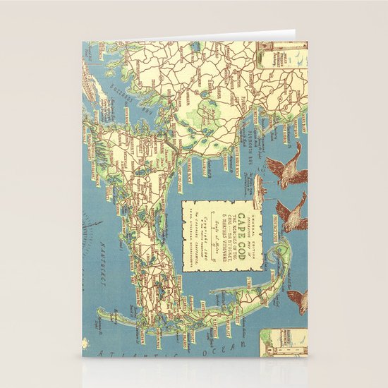 Vintage Cape Cod Map 1940 Stationery Cards By Bravuramedia